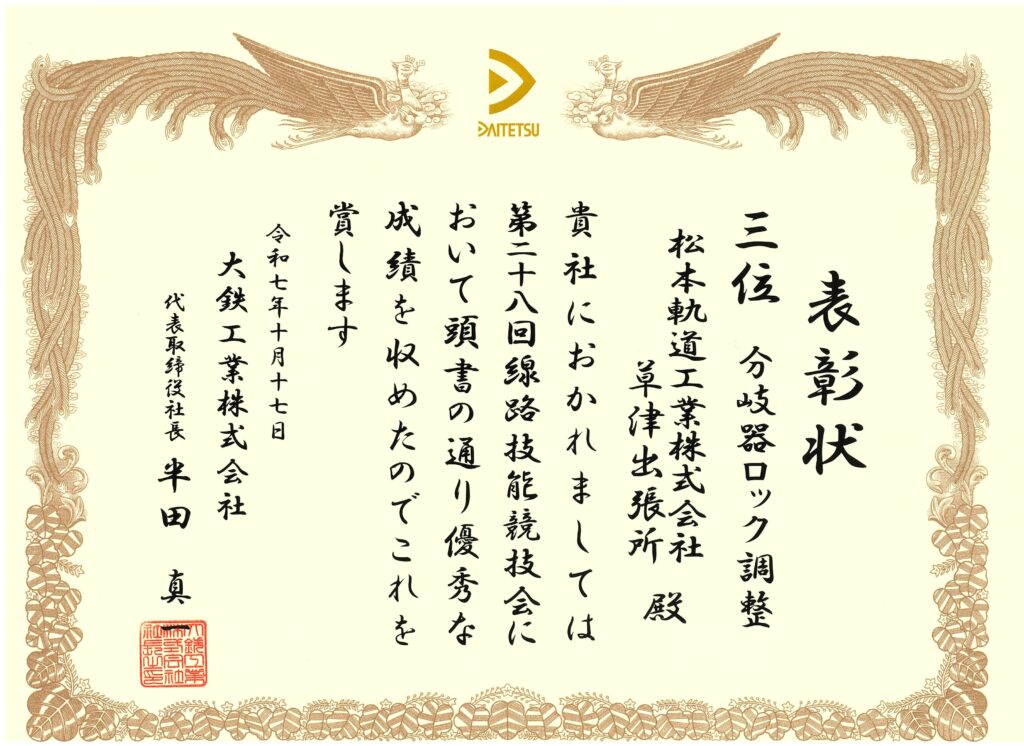 第28回大鉄工業線路技能競技会 3位を受賞しました!